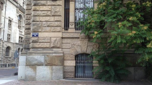 Ein weiteres Prachtstück ging mir unweit der Nikolaikirche ins Netz. In einem engen Hinterhof zeigt einer der Lichtschächte folgendes: